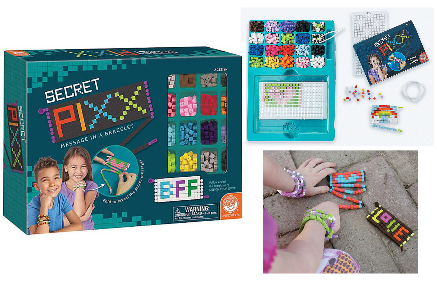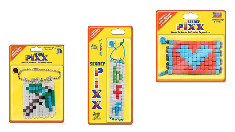 The inventors of a secret message bracelet concept hired me to rebrand and rename their product and to license the concept. I licensed the concept to MindWare as Secret Pixx.